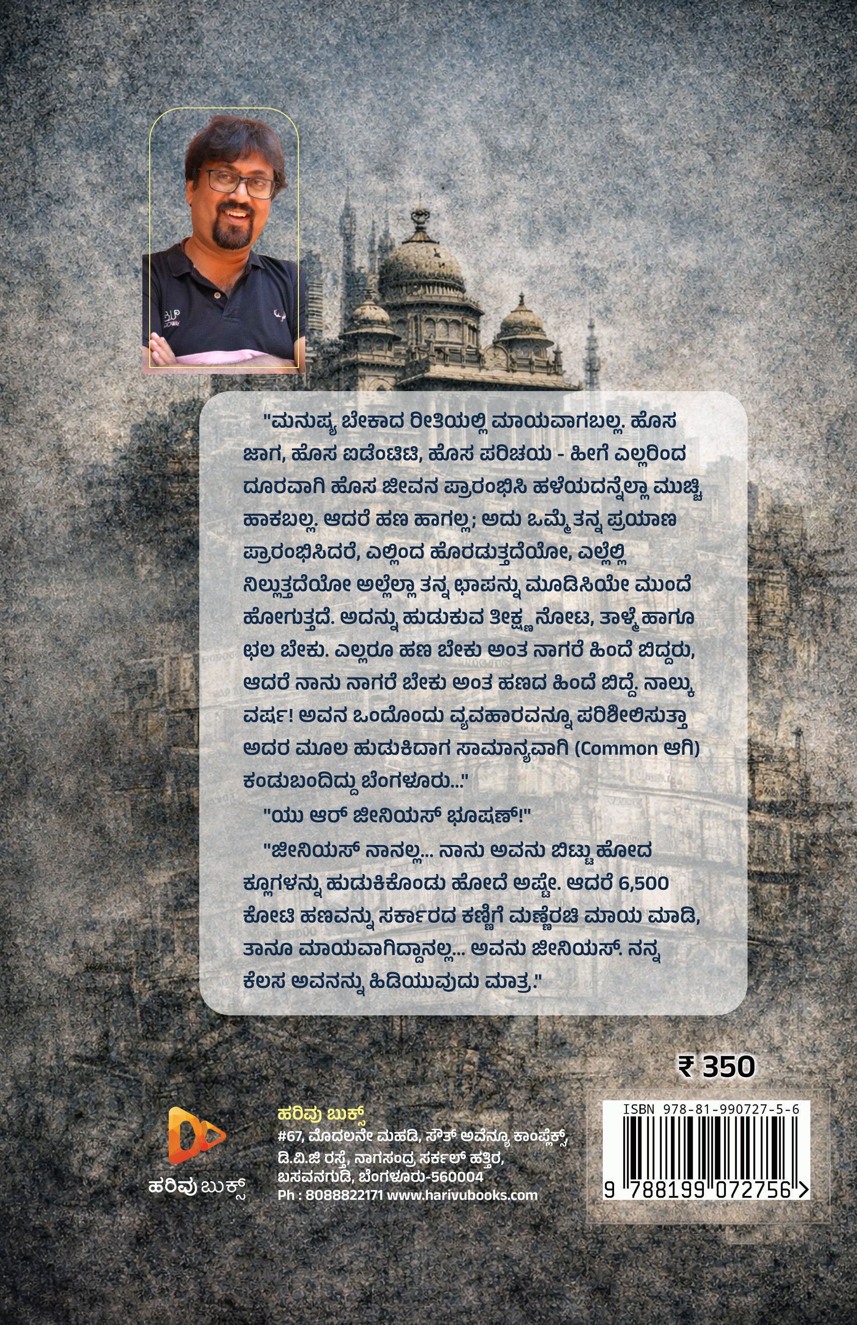 "ಮನುಷ್ಯ ಬೇಕಾದ ರೀತಿಯಲ್ಲಿ ಮಾಯವಾಗಬಲ್ಲ. ಹೊಸ ಜಾಗ, ಹೊಸ ಗುರುತು (Identity), ಹೊಸ ಪರಿಚಯ - ಹೀಗೆ ಎಲ್ಲರಿಂದ ದೂರವಾಗಿ ಹೊಸ ಜೀವನ ಪ್ರಾರಂಭಿಸಿ ಹಳೆಯದನ್ನೆಲ್ಲಾ ಮುಚ್ಚಿ ಹಾಕಬಲ್ಲ. ಆದರೆ ಹಣ ಹಾಗಲ್ಲ; ಅದು ಒಮ್ಮೆ ತನ್ನ ಪ್ರಯಾಣ ಪ್ರಾರಂಭಿಸಿದರೆ, ಎಲ್ಲಿಂದ ಹೊರಡುತ್ತದೆಯೋ, ಎಲ್ಲೆಲ್ಲಿ ನಿಲ್ಲುತ್ತದೆಯೋ ಅಲ್ಲೆಲ್ಲಾ ತನ್ನ ಛಾಪನ್ನು ಮೂಡಿಸಿಯೇ ಮುಂದೆ ಹೋಗುತ್ತದೆ. ಅದನ್ನು ಹುಡುಕುವ ತೀಕ್ಷ್ಣ ನೋಟ, ತಾಳ್ಮೆ ಹಾಗೂ ಛಲ ಬೇಕು. ಎಲ್ಲರೂ ಹಣ ಬೇಕು ಅಂತ ನಾಗರೆ ಹಿಂದೆ ಬಿದ್ದರು, ಆದರೆ ನಾನು ನಾಗರೆ ಬೇಕು ಅಂತ ಹಣದ ಹಿಂದೆ ಬಿದ್ದೆ. ನಾಲ್ಕು ವರ್ಷ! ಅವನ ಒಂದೊಂದು ವ್ಯವಹಾರವನ್ನೂ ಪರಿಶೀಲಿಸುತ್ತಾ ಅದರ ಮೂಲ ಹುಡುಕಿದಾಗ ಸಾಮಾನ್ಯವಾಗಿ (Common ಆಗಿ) ಕಂಡುಬಂದಿದ್ದು ಬೆಂಗಳೂರು..."