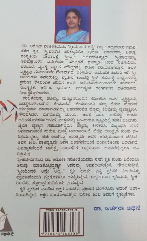 ಡಾ. ಅಶೋಕ ನರೋಡೆಯವರ 'ಸ್ತ್ರೀಯೆಂದರೆ ಅಷ್ಟೇ ಅಲ್ಲ...' ಸಹೃದಯರ ಗಮನ ಸೆಳೆದ ಕೃತಿ. 'ಸ್ತ್ರೀವಾದ'ದ ಪರಿಕಲ್ಪನೆಯೇ ಪ್ರಮುಖ ವಿಷಯವಸ್ತು ಬಹುತ್ವ ಸಂಸ್ಕೃತಿಯ ಭಾರತದಲ್ಲಿ ಸ್ತ್ರೀವಾದ ಚರ್ಚಿತಗೊಳ್ಳುತ್ತಿದೆ. 'ಸ್ತ್ರೀವಾದ'ವನ್ನು ಅಭಿವ್ಯಕ್ತಗೊಳಿಸಿ ಮಹಿಳೆಯರ ಮುನ್ನಡೆಗೆ ಮುನ್ನುಡಿ ಬರೆದ ರಚನೆಯಿದು. ಪರಂಪರೆ, ವ್ಯವಸ್ಥೆ ಸ್ಥಾಪಿತ ಮೌಲ್ಯಗಳಲ್ಲಿ ಮಹಿಳೆ ಮಾಯವಾಗಿದ್ದಾಳೆ. ಅವಳ ವ್ಯಕ್ತಿತ್ವವು ಗೋಚರಿಸದೇ ಗೌಣವಾಗಿದೆ. ಲಿಂಗಭೇದ ಸಾಮಾಜಿಕ ಪಿಡುಗು ಆಗಿ ಸೀ ಆಶಯಗಳು ಈಡೇರುತ್ತಿಲ್ಲ. ಪ್ರಾಚೀನ ಕಾಲದಲ್ಲಿ ಸ್ತ್ರೀಗೆ ಸಹಬಾಳ್ವೆ ಸಾಧ್ಯವಾಗಿದ್ದು ಕ್ರಮೇಣ ಕೌಟುಂಬಿಕ ಪರಿಧಿಗೆ ಅವಳು ಸೀಮಿತವಾಗುವಂತಾಯಿತು. ಸಾಮಾಜಿಕ, ಸಾಂಸ್ಕೃತಿಕ, ಆರ್ಥಿಕ, ಧಾರ್ಮಿಕ, ರಾಜನೈತಿಕ ರಂಗಗಳಿಂದ ದೂರವುಳಿದು ನಿರ್ಲಕ್ಷಕ್ಕೊಳಗಾದಳು.