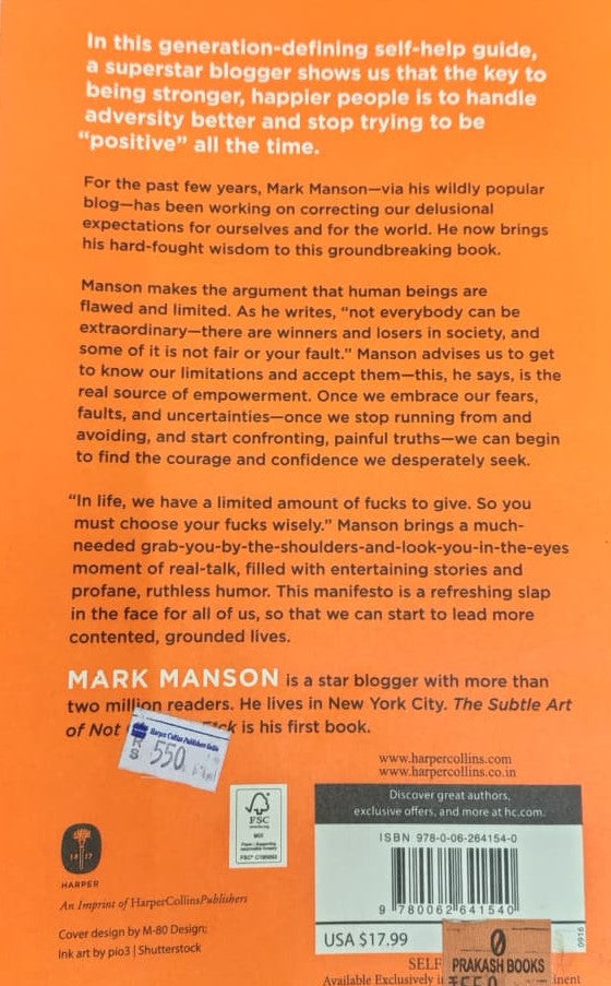 For decades, weve been told that positive thinking is the key to a happy, rich life. "Fuck positivity, " Mark Manson says. "Lets be honest, shit is fucked and we have to live with it." In his wildly popular Internet blog, Manson doesnt sugarcoat or equivocate. He tells it like it is—a dose of raw, refreshing, honest truth that is sorely lacking today. The Subtle Art of Not Giving a F k is his antidote to the coddling, lets-all-feel-good mindset that has infected